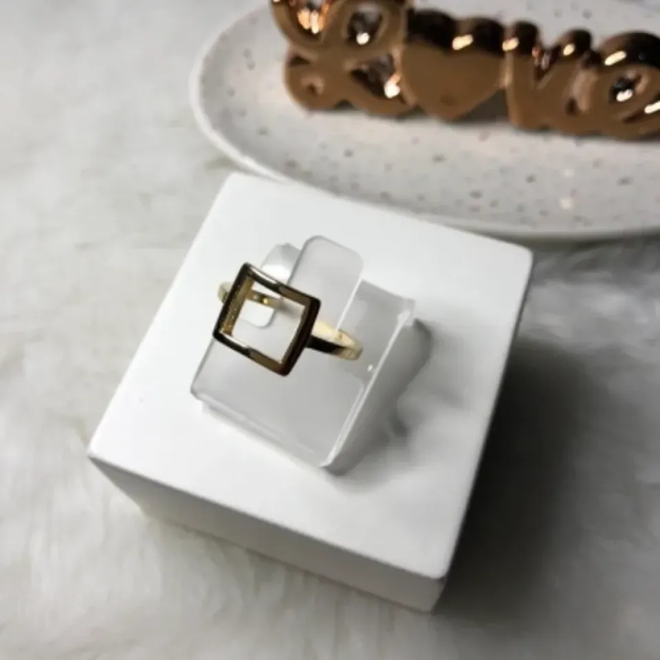 Anel Geométrico Quadrado Banhado a Ouro 18k