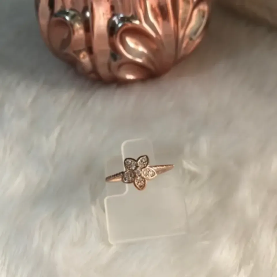 Anel Ouro Rose Aro Torcido Flor Cravejada