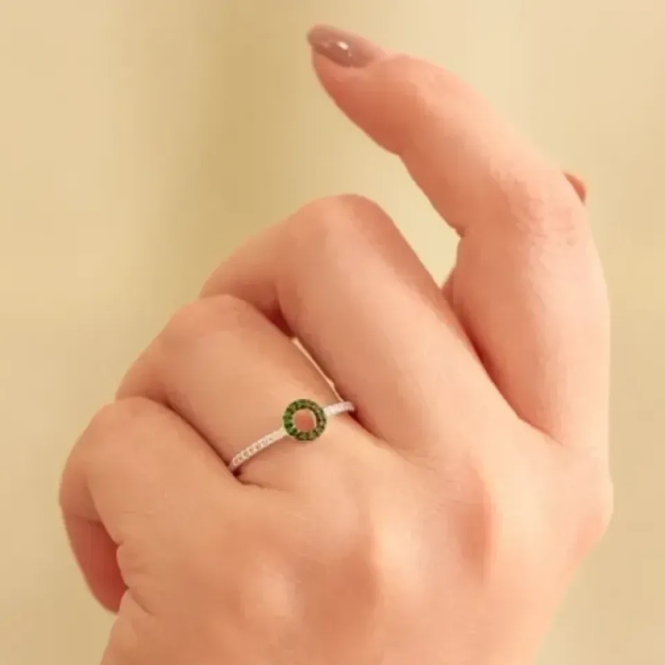 Anel Redondinho Esmeralda Prata 925