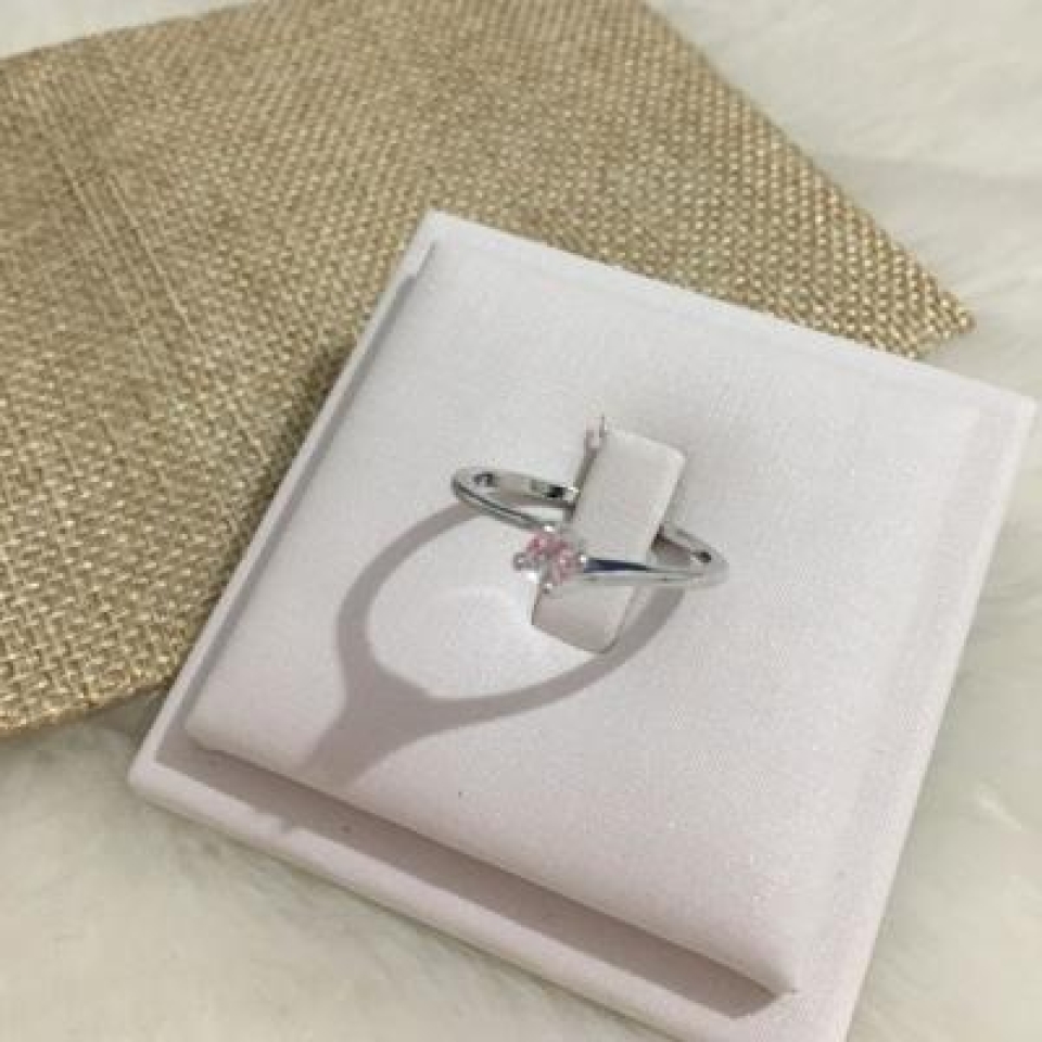 Anel Solitário Banhado a Ródio Branco