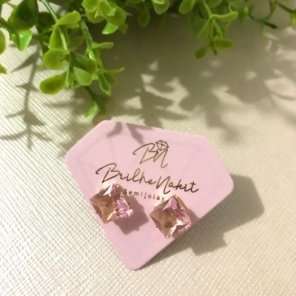 Brinco Zircônia Quartzo Rosa G Banhado a Ouro 18k
